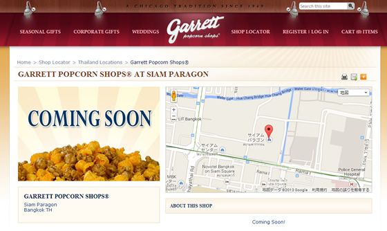 原宿でも大人気のシカゴ生まれの「ギャレット ポップコーン ショップス」が2014年1月29日にバンコクのセレブなデパート・サイアムパラゴン内にオープン。反政府デモで客足の鈍い中も、ギャレットポップコーンを待ち焦がれた人たちで大行列でした。