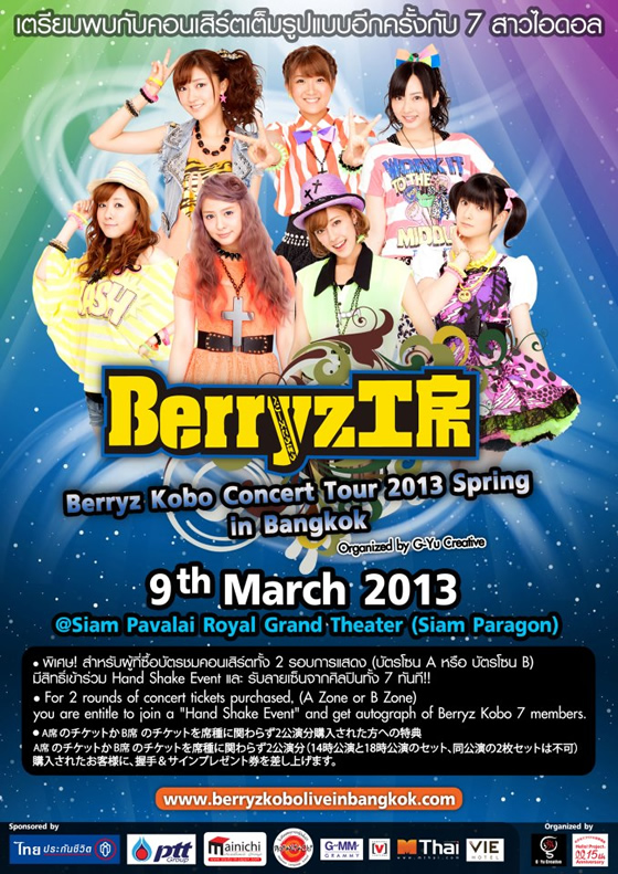 2013年3月9日にサイアムパワライ・ロイアルグランドシアターで開催される人気アイドルグループBerryz工房のタイ・バンコク単独公演「Berryz