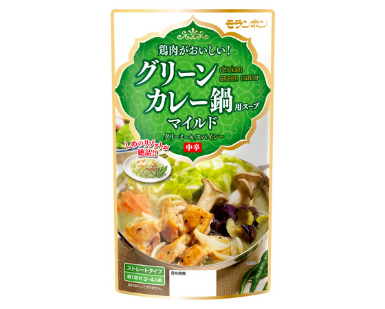 モランボン株式会社は人気のエスニック料理が鍋料理として家庭で楽しめる「グリーンカレー鍋用スープ