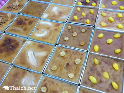 [タイ語] ขนมหม้อแกง カノムモーゲンとはタロイモや卵やココナッツミルクを原料に作られるケーキ。