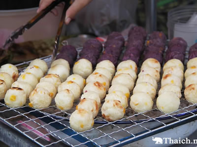 [タイ語] มันทิพย์ マンティプとはタピオカ芋(キャッサバ)で作る球状のお菓子。