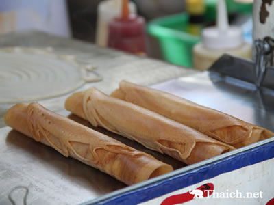 [タイ語] ขนมเบื้อง カノムブアンとはタイの昔ながらのお菓子。鉄板でパリっと焼いた皮に甘いクリームなどを包み込む。