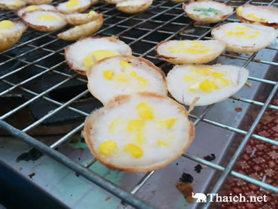 [タイ語] ขนมครก カノムクロックとは米粉と砂糖とココナッツミルクで出来た生地を、たこ焼き器のようなもので焼いたお菓子。
