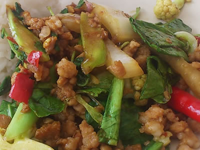 [タイ語]ผัดกระเพรา パットガパオとはバジル炒めのこと。