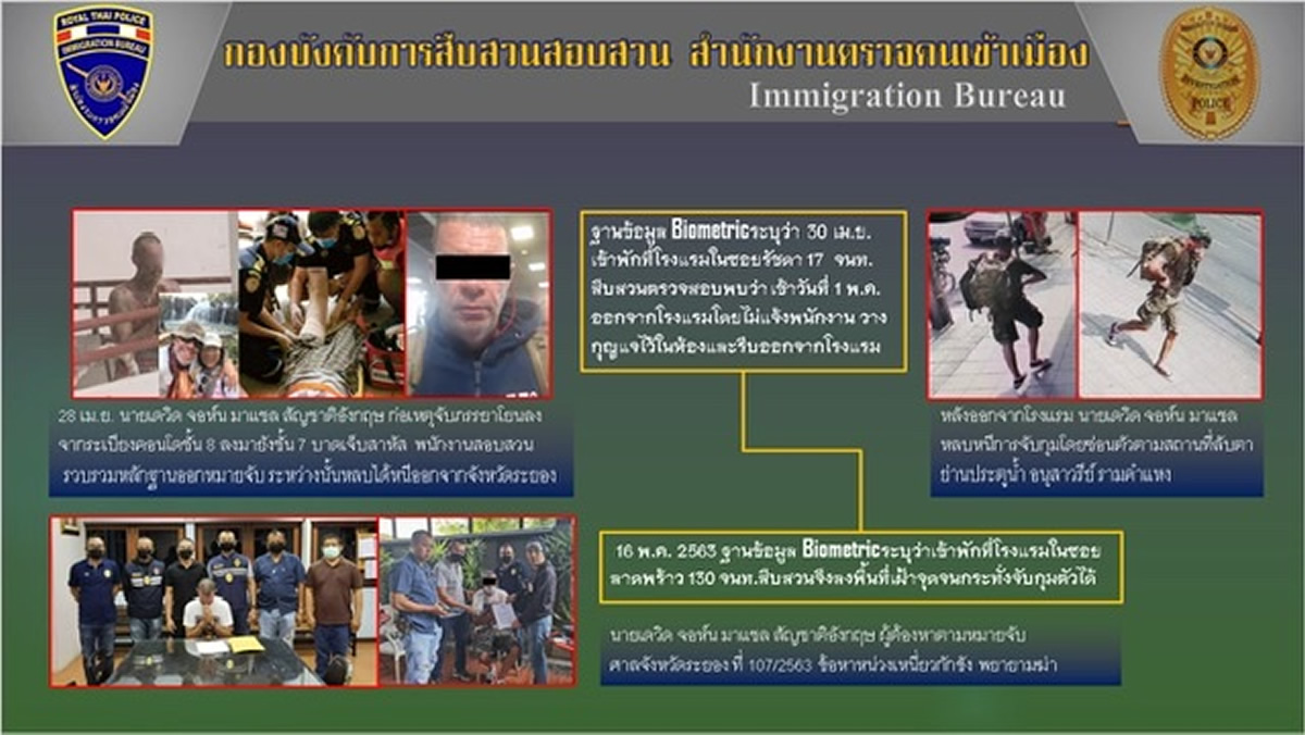 タイ警察は2020年5月27日、ラヨーン県のコンドミニアムの8階からタイ人妻(56歳)を投げ落としたイギリス人の男(47歳)を、バンコクで逮捕したと発表しました。