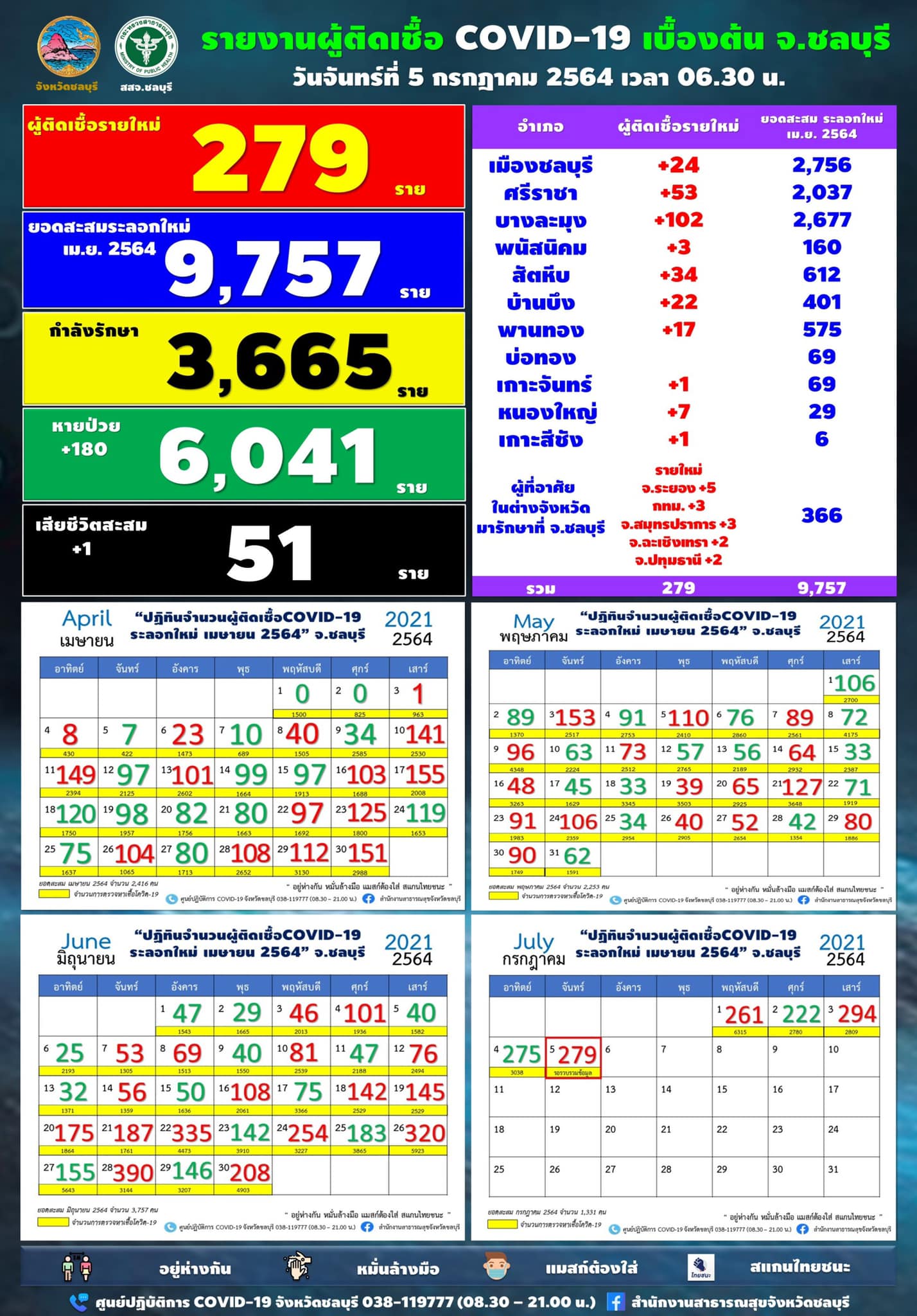 タイ東部チョンブリ県は2021年7月5日朝6時半、新型コロナウイルスの最新の感染状況の発表を行いました。