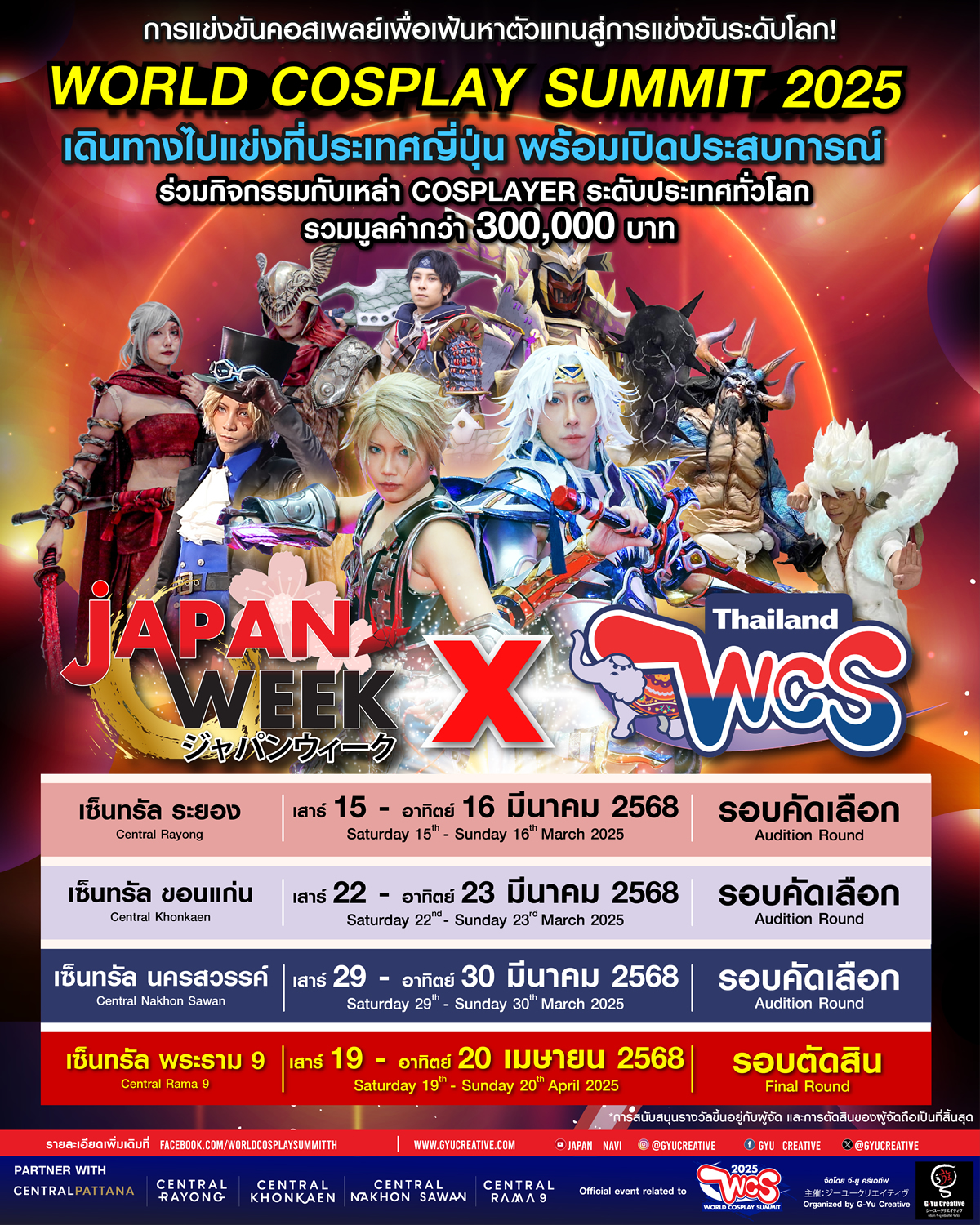 「JAPAN WEEK x WORLD COSPLAY SUMMIT THAILAND 2025」が開催され、世界コスプレサミット(WCS)世界大会のタイ代表を選出する選考会が行われます。優勝者には名古屋での世界大会出場