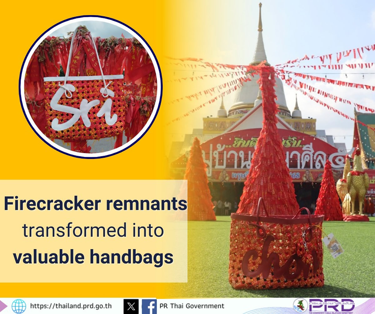 ナコンシータマラート県シチョン郡にあるワット・チェディでは、願いが叶った人々が奉納した爆竹の残骸が、ハンドメイドのエコバッグとして新たな命を吹き込まれています。地元コミュニティとワライラック大学の研究チームが協力し、環境
