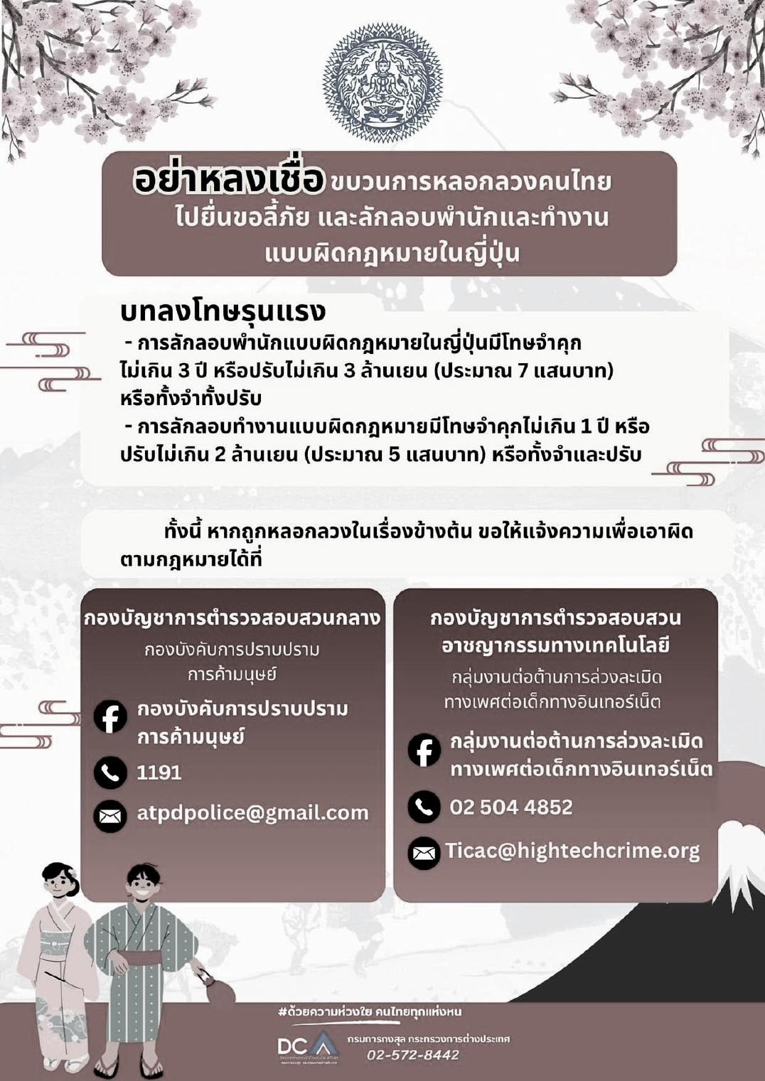 在東京タイ王国大使館は公式Facebookページで2025年10月30日、日本での難民申請や不法滞在、不法就労を持ちかける詐欺グループの存在について、在日および日本への渡航を検討しているタイ人に対し注意を呼びかけました。