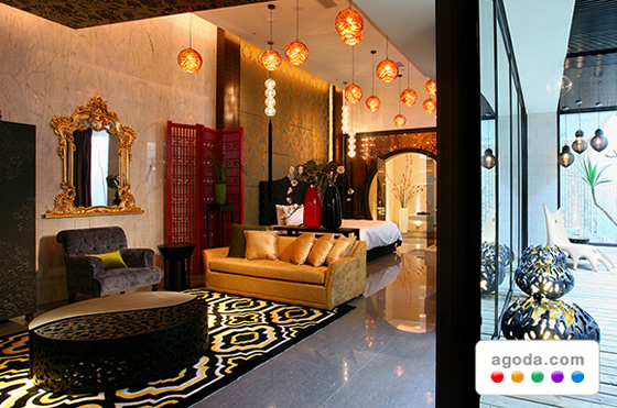 アジアンスタイルにインスパイアされたエキゾチックで豪華なインテリア。部屋はゲームにちなんでそれぞれ名前が付けられている。