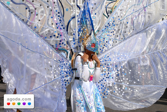 現在は8月 の祝日に毎年開催され、人々は夏の終わりを告げる年中行事、そしてクリスマス前の最後の祝日としてこのカーニバルを認識しているそうです。情熱的な衣装に 身を包んだ人々、一流の音楽パフォーマンス、趣向を凝らしたフロート(お祭りの山車)、様々なダンスが繰り出される週末のフェスティバルを楽しもうと、200万人以上もの人々が集まります。お店、屋台、ゲームもたくさん出ますので、老若男女問わず、どなたにでもお楽しみいただけるでしょう。