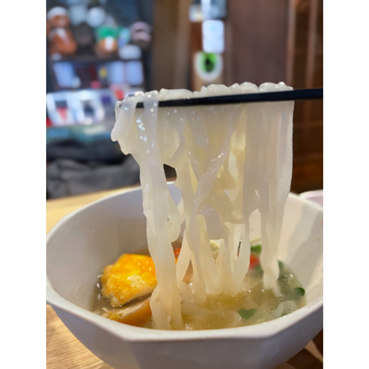 麺のベースには、米粉とタピオカが使用されており、濃厚な鶏出汁との相性も抜群です。お雑煮を思わせる味わいは、多くの日本人に喜ばれると確認しております。また、〆にご飯を投入しておかゆとしても楽しむことができます。