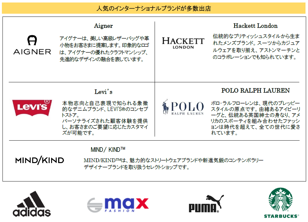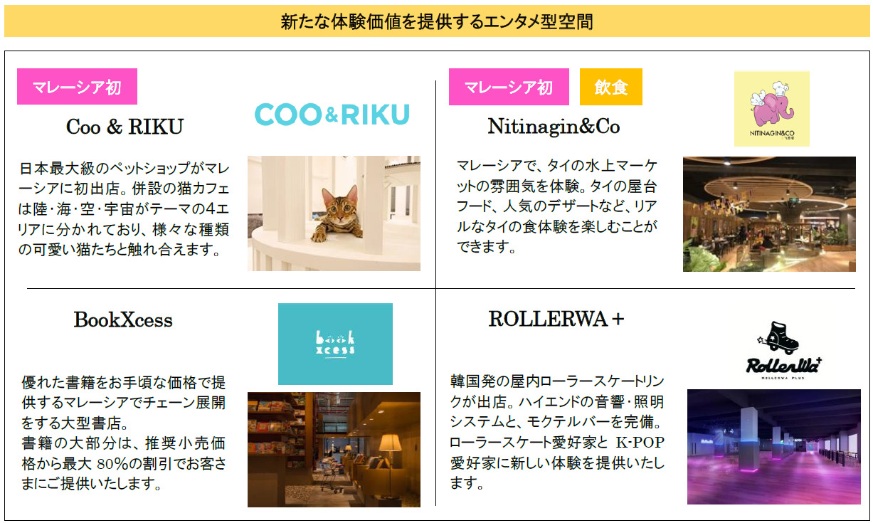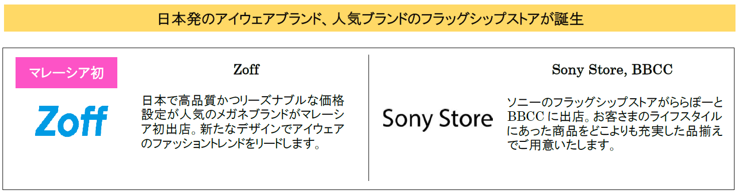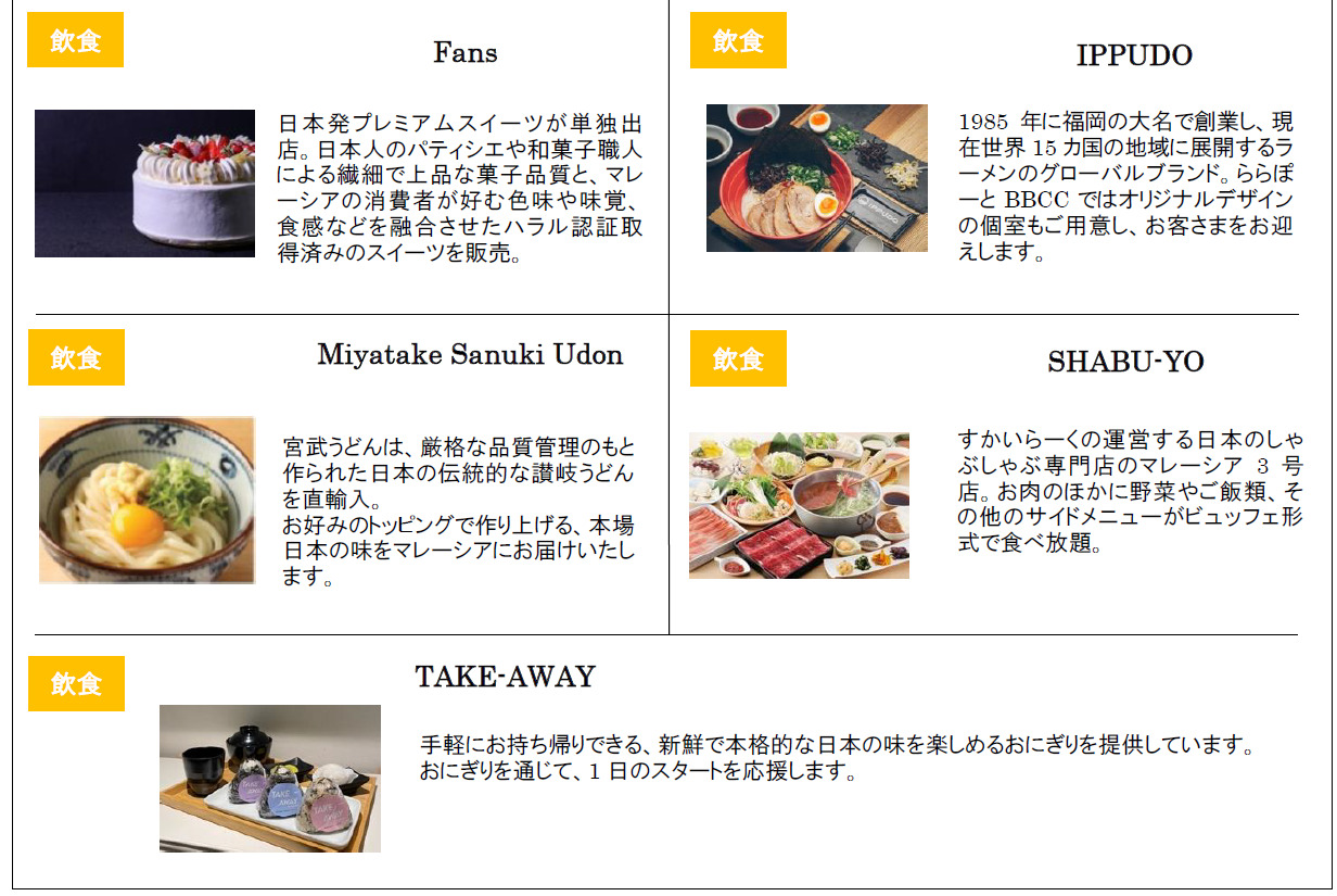 「ららぽーとBBCC」には、グローバルブランドに加えて、日本でお馴染みのNITORI、Nojimaなどマレーシア初出店となる日系ブランド、日本発マレーシア初出店のレストランのほか、マレーシアの人気ブランドが多数出店します。