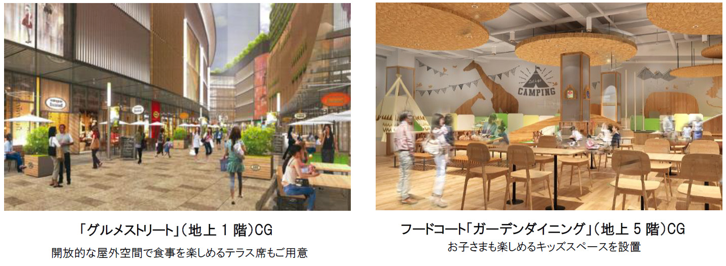 【左】ららぽーとBBCC 外観【右】セントラル ルーフトップ ガーデン