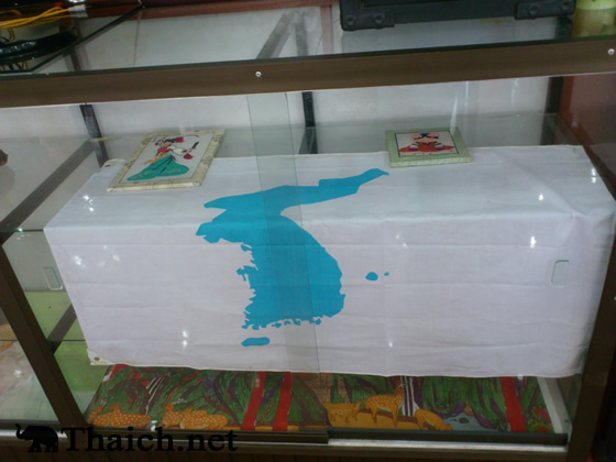 料理ができてくるまでの間、店内を観て回りながら店員さんの許可を得て写真撮影。何かお土産が買えないかとショーケースを見てみると、民族衣装を着た携帯ストラップ(8000キープ、約80円)がありましたが、これは韓国製なんだそうです(笑)せっかくなので店員さんの撮影もお願いしましたが、断られてしまいました。