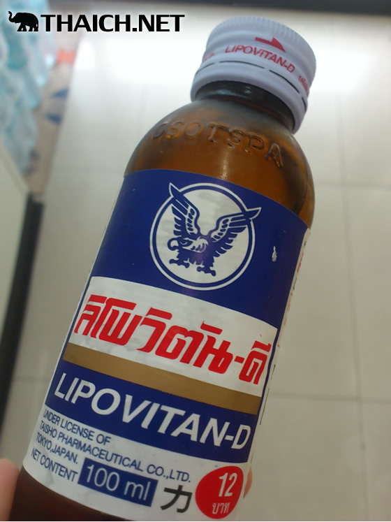 1965年にタイ初の栄養ドリンクとして発売開始されたリポビタンD(ลิโพวิตัน-ดี)。日本では100mL瓶が一本140円ですが、タイでは12バーツ(約40円)と非常に安価です。タイでは、レッドブルやM150やカラバオなど数々の栄養ドリンクが一本10バーツ販売されていますが、2バーツ高くてもリポビタンDを手にとってしまいますね。100mLでは量が少なくて物足りないという方は、150mL便で15バーツのリポ・プラス(ลิโพ พลัส)を!