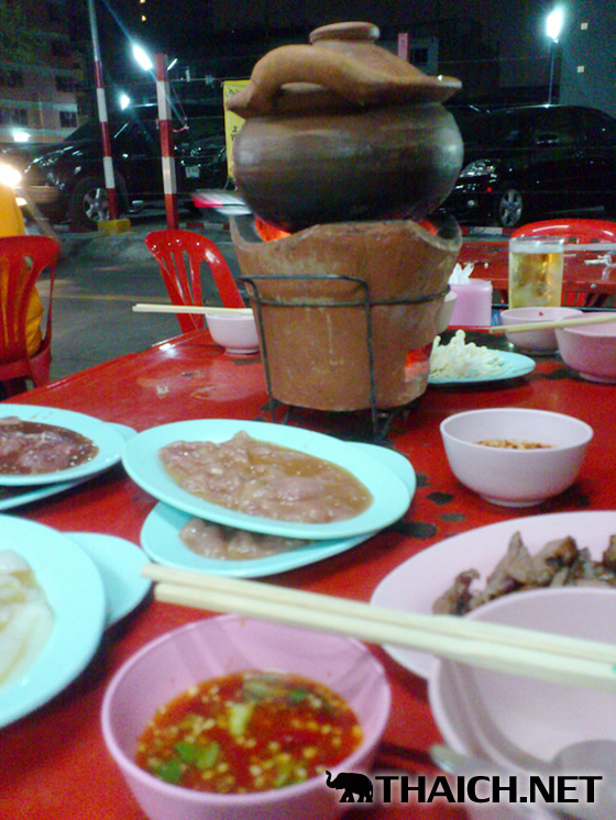 夕飯時になると評判を聞いて駆けつけた人たちで店内は超満員です。肉や野菜やシーフードなど、好きなものを鍋に放り込み、蓋を閉めて炭火でグツグツ煮込めば出来上がり。この日は3人でソムタムなどイサーン料理も注文し、鍋もたっぷり堪能して、ビールもたらふく呑んでお会計は1000バーツ。美味しくて安くて言うことなしです!