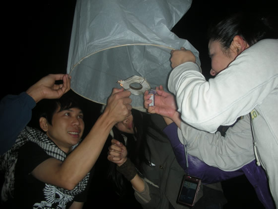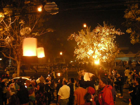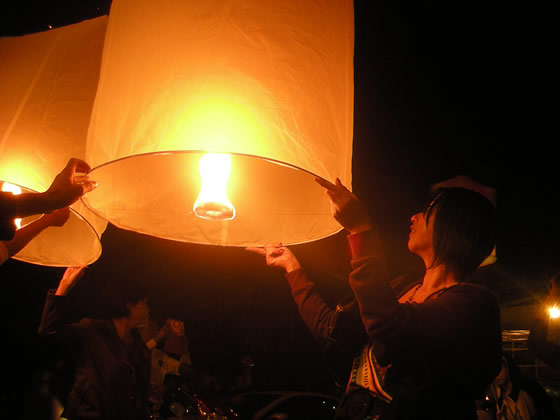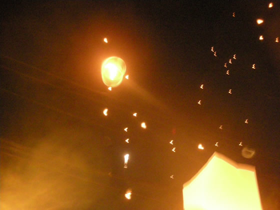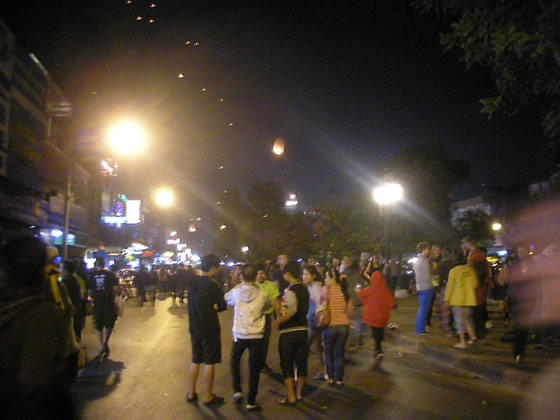 幻想的な光景とバカ騒ぎを味わうなら、ターペー門あたりが一番。皆さんも年末年始にタイに行くことがあったら、ぜひ参加してください。