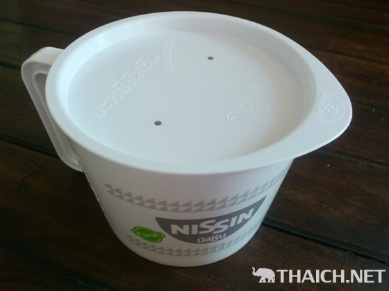 タイのネット掲示板で、今一番美味しいインスタント麺と話題になっている一袋6バーツの日清の袋麺。現在4袋買うと、電子レンジでも調理が出来る専用カップが35バーツで買えるプロモーション中ということで早速購入してみました。