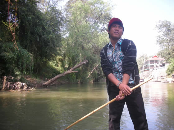 いかだこぎのお兄さんは、カメラを向けるととっても照れくさそうでした。