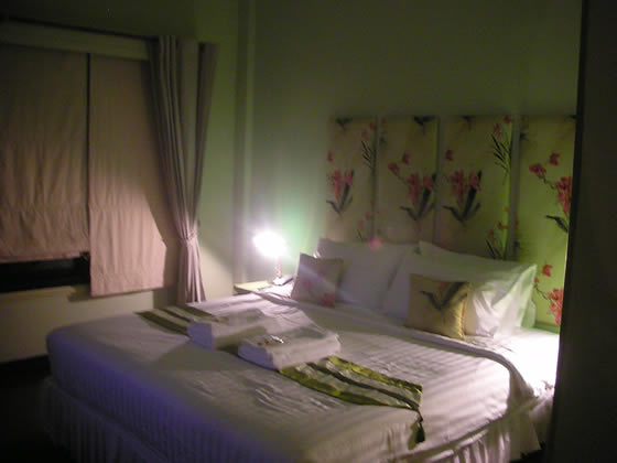 ベッド周りは素敵な夢が見れそうなロマンティックな装飾。このホテル、オフシーズンは一部屋4000円くらい。ピークシーズンでも5200円くらいでした。