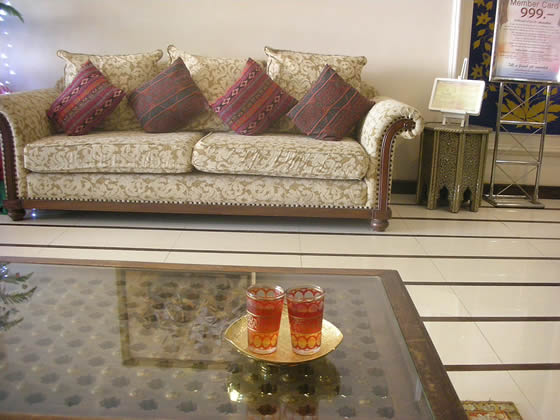ロビーに入るとこれまたイスラムな雰囲気のおもてなしで歓迎していただけます。こういうお茶のスタイル、新鮮。