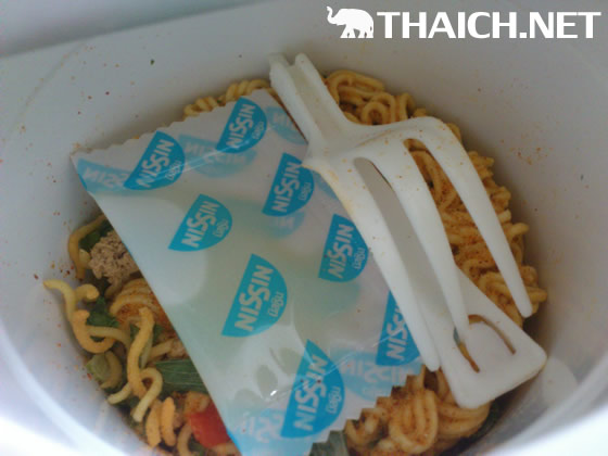 カップの中のプラスチックフォークと、袋に入ったライム汁を取り出し、お湯を入れて待つこと3分。そこにライムを加えると、湯気とともに爽やかな酸味が立ち登り食欲をそそります。