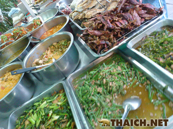 タイにいるなら、やっぱり食べたいタイ料理。ところがメニューを見ても何を頼んで良いのか迷うこともしばしばですね。そんな時はカオラートゲーン(ข้าวราดแกง)のお店へ行きましょう。店頭にズラリと並んだタイ料理お惣菜の中から、好きなものを選んでご飯に乗せてもらうという簡単なシステム。野菜もたっぷりとれて、しかも安い(一枚のお皿にご飯とお惣菜2品を盛って50バーツ以下がほとんど)。もちろんお持ち帰りをして、家やホテルで食べてもOKです。