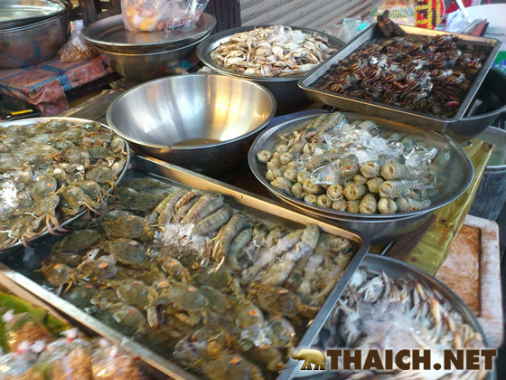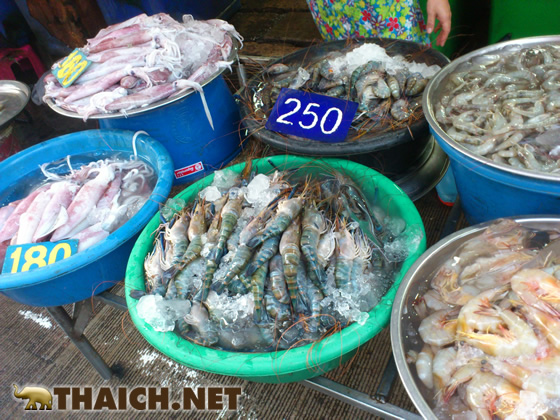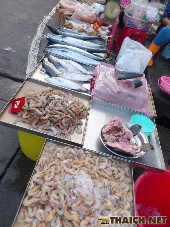 夕方にスクンビット通り沿いから小道を入って行くと、そこは魚介類や野菜など生鮮食品の市場が開かれていて、地元の人達で賑わっています。バンコクからバンセーンまででは自動車で1時間ちょっとですので、新鮮魚介類の買い出しの旅も楽しそうですね。