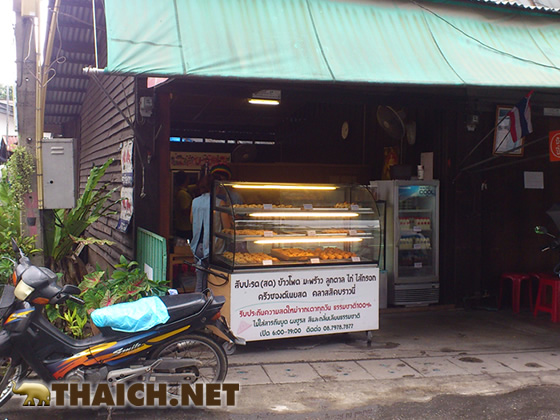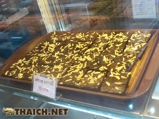 チョンブリ県・バンセーンのノーンモン市場(Nongmon Market,ตลาดหนองมน)近くにある、人気のお菓子屋さん。売られているのはクロワッサンと、パイナップルやココナッツ、ツナ、とうもろこし、ソーセージ、ムーデーンなど数種類のパイ。そしてブラウニー。そのブラウニーは、ほとんどチョコレートじゃないかというほどチョコレートがたっぷりで甘党にはたまりません!価格は全て15バーツ以下とお買得価格なので、ついつい食べ過ぎてしまいそうですね。