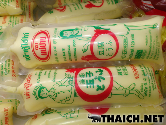 タイではスープに入れて食べられることが多いお豆腐ですが、スーパーで売られているお豆腐は四角いパック入りでなく、チューブに入っているものが主流です。また玉子豆腐もよく売られていて、野菜風味の玉子豆腐なんていうのもあるようですね。