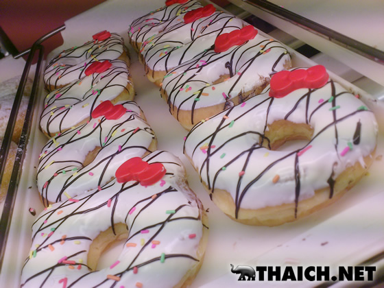 既に見たことがある人や食べたことがある人も多いでしょうか?ただ今ミスタードーナッツでキティちゃんの大キャンペーン中。なんと9種類ものハローキティドーナツが販売されています。価格も10バーツ、15バーツ、19バーツととってもお求めやすい価格。女の子のいるお家を訪ねる際のお土産は、このハローキティドーナツセットで決まりですね。お試しを。