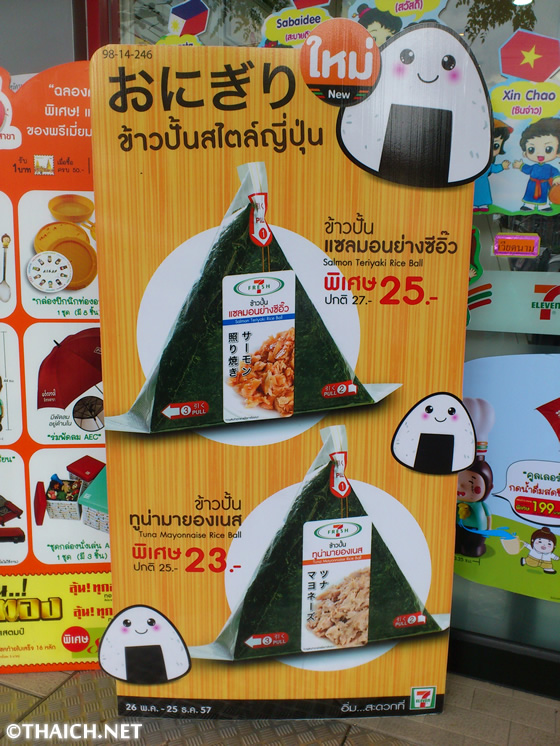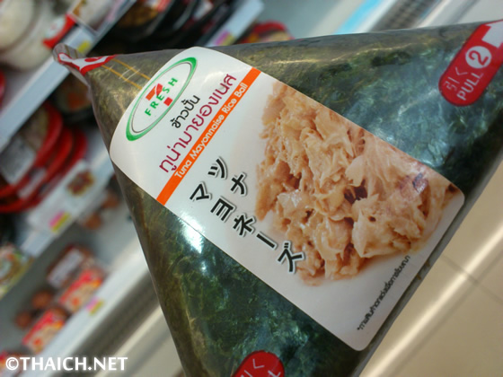 タイのセブンイレブンの一部の店舗で販売されているおにぎり。ツナマヨネーズとサーモン照り焼きの2種類があったので、日本でもお馴染みのツナマヨネーズのおにぎりを買ってみました。パッケージは簡単に中身が取り出せるあの方式で、どこかで見たような酢飯のなんちゃっておにぎりでもなく、正真正銘日本のおにぎり(笑) 思った以上に具もたっぷり入っており、ちょっとお腹が空いた時にはピッタリですね。お試しを。