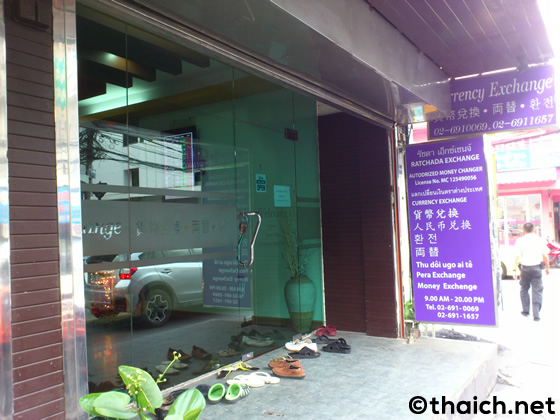 ラチャダーピセーク通りのホワイクワン交差点から東に入るプラチャーラートバンペン通り(ประชาราษฎร์บำเพ็ญ) 。中華料理屋さん、マッサージ屋さん、お土産屋さんなど、中国人旅行者相手のお店が多い中で、旅行者には欠かせない両替屋さんももちろんあります!