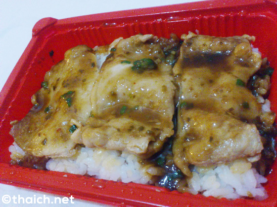 ご飯の上に3枚の豚の焼肉が乗せられたシンプルなものですが、49バーツのコンビニ弁当と考えれば十分。うたい文句通り、甘いタレで焼かれた豚肉はとっても柔らかく、日本米ともマッチしてなかなか美味しいですね。これからもお弁当のバリエーションが増えることを期待したいです。