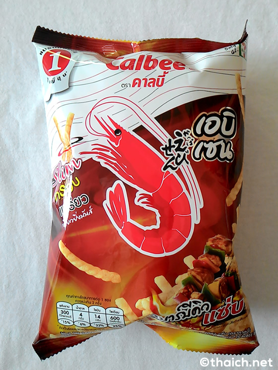 タイのカルビーより発売になった新しい味のかっぱえびせん。その味とは「バーベキュー・セーブ(บาร์บีคิว แซ่บ)」。日本語で言うと「美味しいバーベキュー」です。