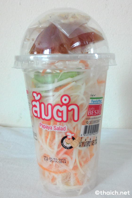 タイ人のソウルフードともいわれるソムタム(パパイヤサラダ)。中には一日一回はソムタムを食べなければ気が済まないという人もいるようで、タイ人にとっては無くてはならないもの。そんなソムタムがファミリーマートで気軽に買えるようになりました。
