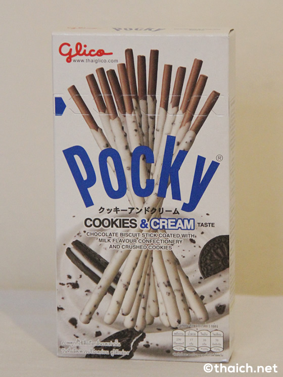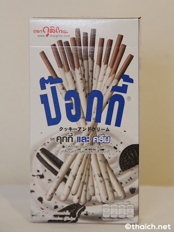 タイグリコから新発売になったポッキーの「クッキーアンドクリーム」がコンビニエンスストアで売られていたので早速食べてみました。 ミルクチョコに砕いたクッキーが散りばめられた「クッキーアンドクリーム」がスティックにコーティング。決して新しい味ではないものの、期待した通りに美味しいです!タイの味ではないので”タイ土産”には向かないかもしれませんが、ぜひ購入したい一品です。お試しを!