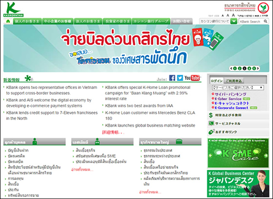 カシコン銀行のインターネットバンキングを利用するためウェブサイトを開けてみると、(http://www.kasikornbankgroup.com/ )日本語対応になっていました。