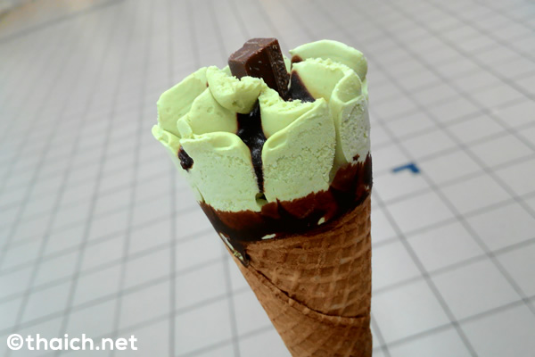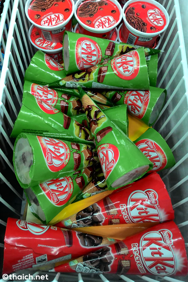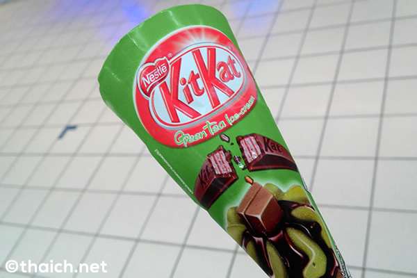 スーパーマーケットにKitKatのアイスクリームコーンがあったのでグリーンティー味を買ってみました。 一見普通のコーンアイスですが、さすがKitKat。ど真ん中にKitKatが突き刺さり、アイスクリームを食べながらKitKatも楽しめるという嬉しい仕様。KitKatファンは絶対食べたい一品でした。 価格はひとつ30バーツ。お試しを!