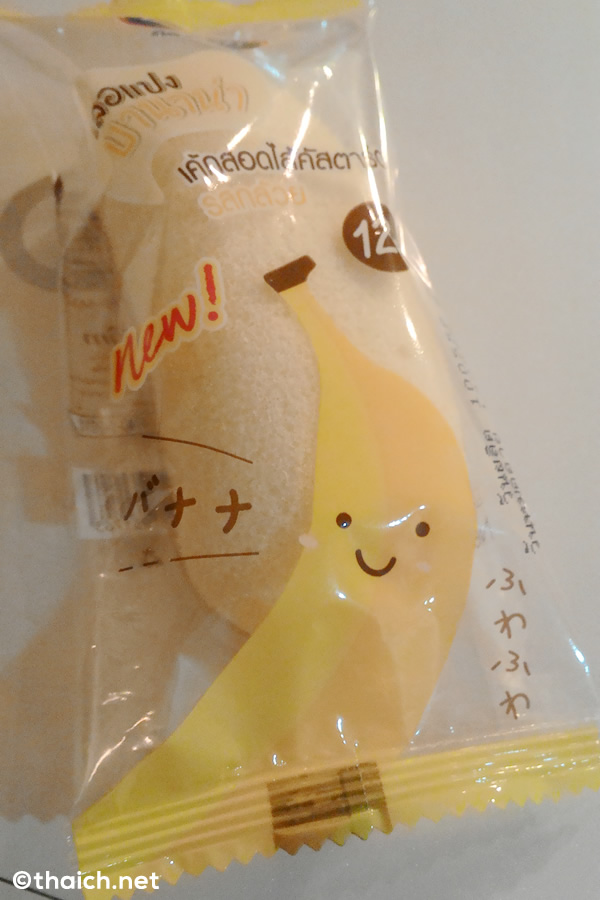 セブンイレブンのレジ横に、日本語で「バナナ」「ふわふわ」と書かれたお菓子が置いてあったので買ってみました。 どことなく「東京ばな奈」のような感じが漂うこのお菓子、食べてみるとパッケージに書いてある通りふわふわで、バナナの風味のクリームがなかなか美味しいです。これで12バーツ(約42円)なら満足ですね。 お試しを。