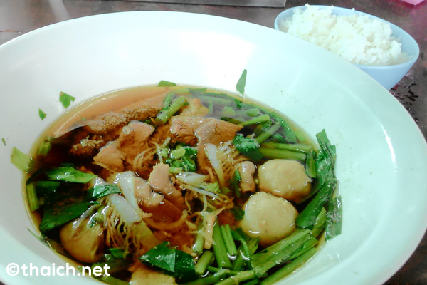 地元の人に大人気の「トー・カオラオヌア・ノンモン」は牛肉スープのお店。お昼前に訪れた時は、すでに広い店内はお客さんでいっぱい。同じテーブルで相席になったお兄さんは、1杯のカオラオで白いご飯を3杯もおかわりをして、大満足な顔をして帰って行きました。