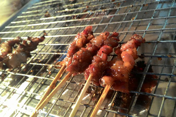日が暮れかけにお店に行くと、ドレッドヘアーのお兄さんが炭火で肉を焼いており、良い香りの煙がもくもくと立って食欲をそそります。