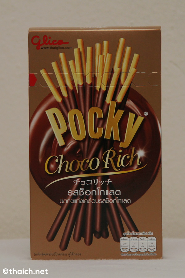 タイグリコの「ポッキー チョコリッチ」。高級感のあるデザインのパッケージで新発売です。一箱25バーツ。 「チョコリッチ」は、通常のチョコポッキーよりもワンランク上の濃度の高いクリーミーなチョコレートが、20%増しになって、リッチな気分に浸れるという謳い文句で登場。気になる方は、ぜひお試しを!