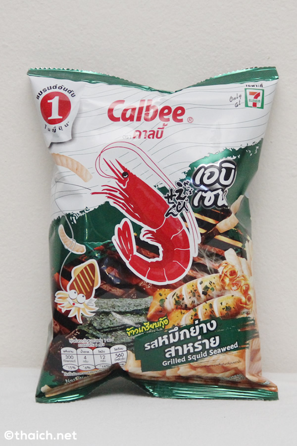 タイでも長らく愛されているカルビー「かっぱえびせん」に新商品。セブンイレブン限定マークのついた「グリルドスクイッドシーウィード(イカ&海苔焼き)」味です。