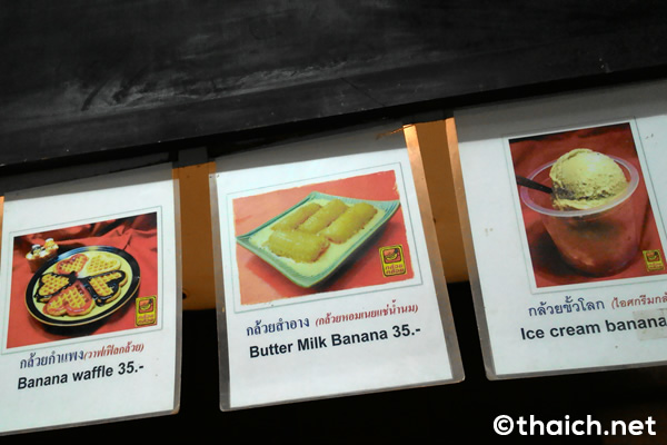 フロアーの一角にあるお店の、カウンター上のバナナデザートメニューから3品を注文。