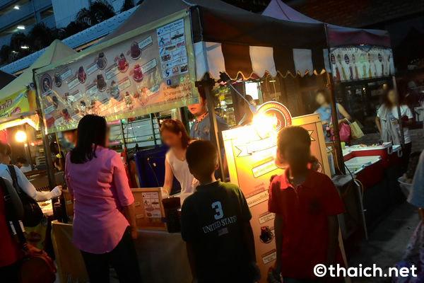 ラチャダーピセーク通りにあるナイトマーケット「タラートロットファイ〈鉄道市場〉」の、行列の出来るスイーツ店「ミッドナイト・パンイェン(Midnight Pangyen,มิดไนท์ปังเย็น)」に行ってきました。