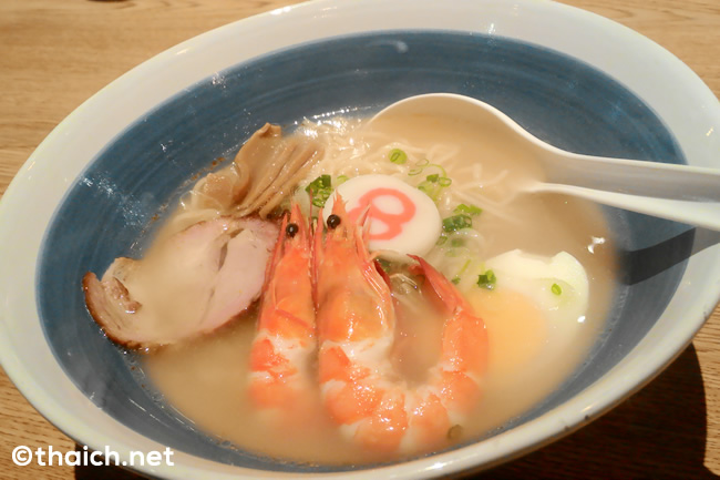 300バーツ(約1000円)近くするラーメンも多い最近のバンコクですが、8番らーめんは庶民に嬉しい低価格路線で、「塩ラーメン」の価格は105バーツ(約350円)。大きな海老が2尾ついてこの価格とは、「流石8番らーめん」と言わざるを得ません。