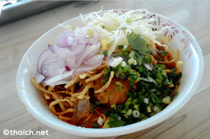 北タイの郷土料理と言って真っ先に思いつくのがカオソーイ(ข้าวซอย)。カレー風味のヌードルスープに、揚げ麺がトッピングされているというアレです。