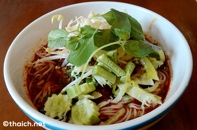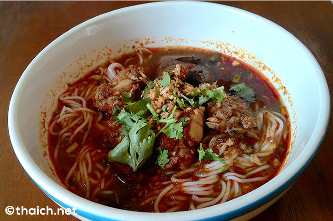 カノムチン・ナムギアオはトマトたっぷりの酸味のあるスープが大きな特徴で、まるで地中海料理をいただいているかのような錯覚に陥るとか、陥らないとか。もしかしたらスープを煮詰めていくと、スパゲティにも合うかもしれません。